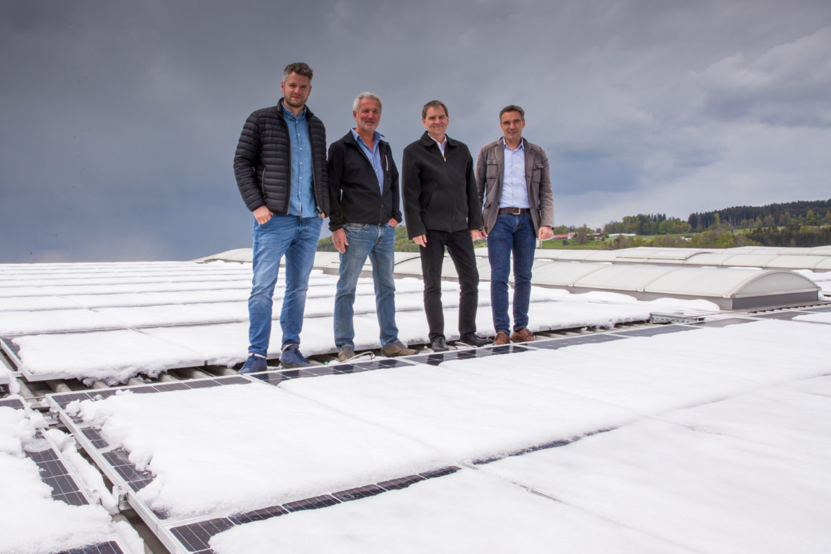 (Bildunterschrift v.l.n.r.: Stefan Merz – solarmotion GmbH, Röbi Schär – Schläpfer Altmetall AG, Peter Jans – Stadtrat Direktion Technische Betriebe und Ruedi Stüssi – Schläpfer Altmetall AG)